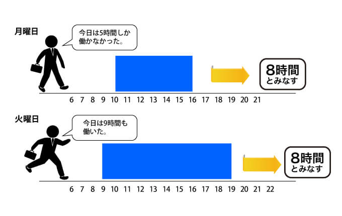 Aさんは、月曜日には5時間、火曜には9時間…と日によってばらばらの時間働いています。