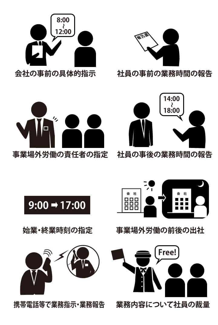 このケースでは①事前の指示②業務途中の指示③業務終了後の報告があったことから、事業場外みなし労働時間制の適用が認められませんでした。