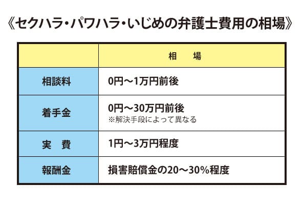 【セクハラ・パワハラ・いじめの弁護士費用】