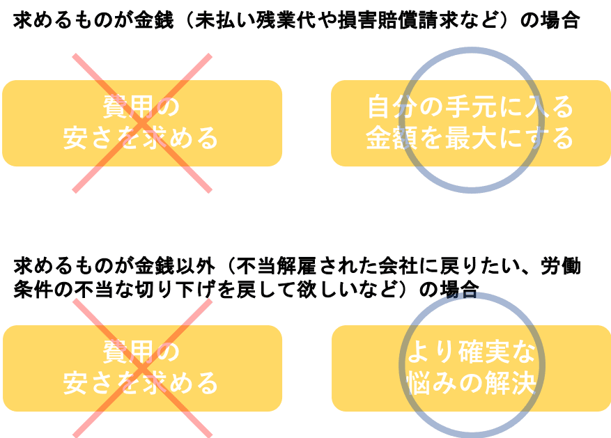労働問題の解決を弁護士に依頼する場合「できるだけ費用を安くしたい」と思う気持ちは分かります。