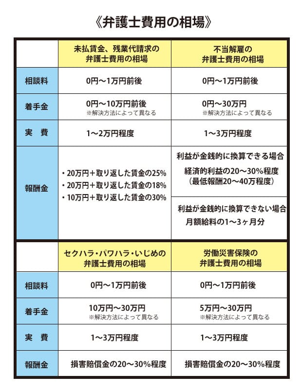1-1:未払い残業代、未払い給料請求の弁護士費用