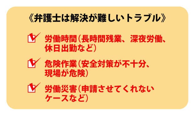 弁護士にも解決できるトラブルと解決できないトラブルがありますし、医者に「眼科」「内科」などの専門があるように、弁護士も専門があり、専門外のことは苦手な弁護士も多いのです。