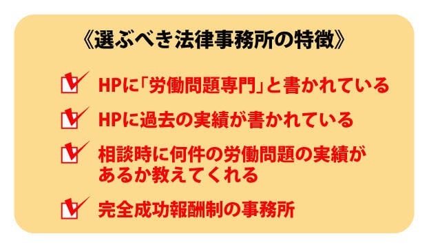 - 失敗しないための「労働問題に強い弁護士」の選び方