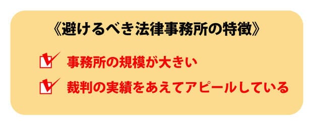 選ぶべき法律事務所の特徴としては、以下のものがあります。