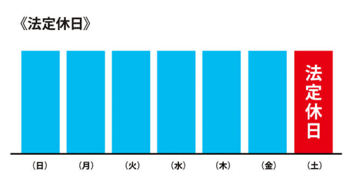 つまり、法定休日は、労働者が会社から必ず与えられる、週1日の休日のことで、会社はこれに違反すると罰則が与えられるのです。