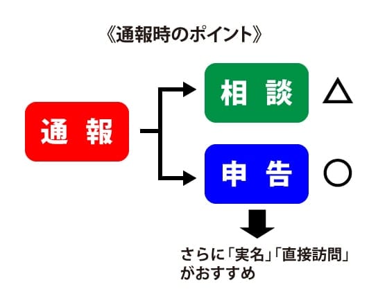さらに、先ほども簡単に触れましたが、通報(申告)は「匿名」や「メール・電話」より、「実名」「直接訪問」で行うべきです。