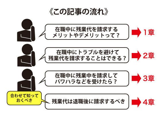 ここまで在職中にできるだけトラブルなく、残業代を請求する方法について解説してきました。