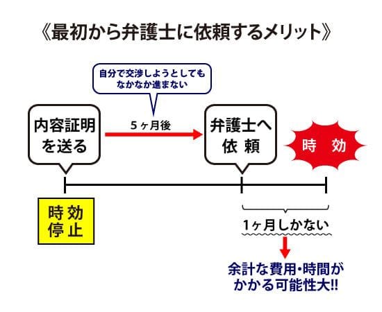この手紙を送付することによって、手続きの翌日から半年間は、時効が成立しなくなります。つまり、半年間時効を止めることができます。
