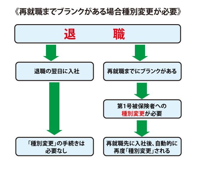 手続きとは、会社員の種別である「第2号被保険者」から、「第1号被保険者」に種別を変更する手続き(種別変更)を行うものです。