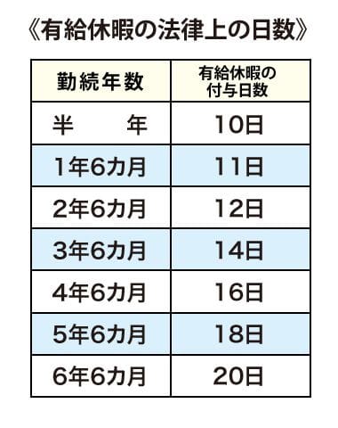 法律上、従業員には以下の日数の有給休暇が付与されますので、退職(辞職)時に残っている日数があれば、会社に申請してすべて消化しておくことをおすすめします。